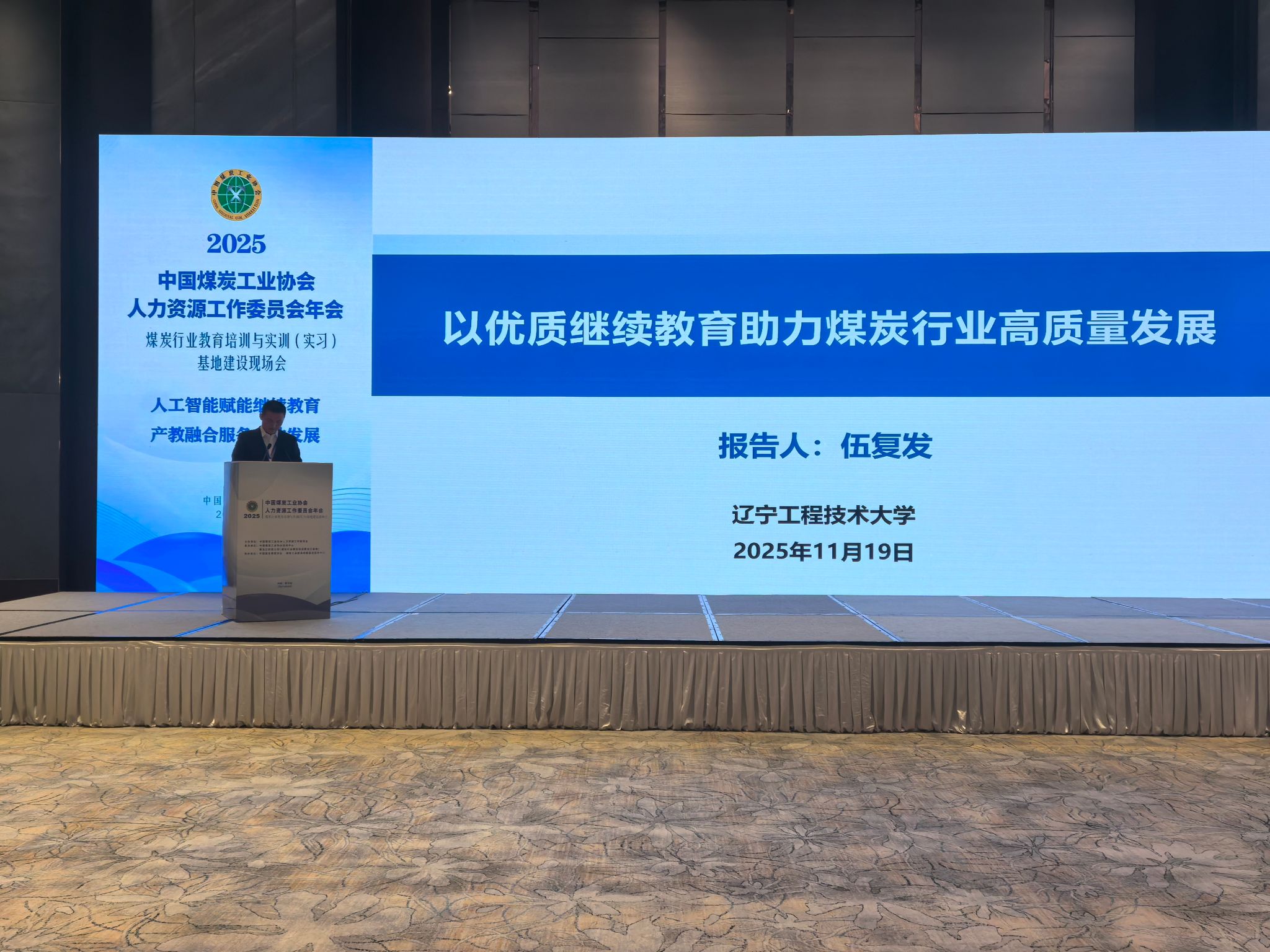 11 月 19 日的经验交流环节中,伍复发副校长以《以优质继续教育助力煤炭行业高质量发展》为题作专题发言。他结合我校继续教育办学实践,提出三大核心举措:一是精准对接煤炭行业转型升级需求,建立 “行业需求 — 课程设置 — 人才输出” 闭环机制;二是优化课程体系,重点增设智能采矿、绿色矿山建设等前沿领域课程,强化实践教学环节;三是深化校企协同,联合区域内重点煤炭企业共建实训基地,开展定制化培训,切实提升人才培养与行业需求的适配度,为煤炭行业输送更多懂技术、善实践的实用型人才。